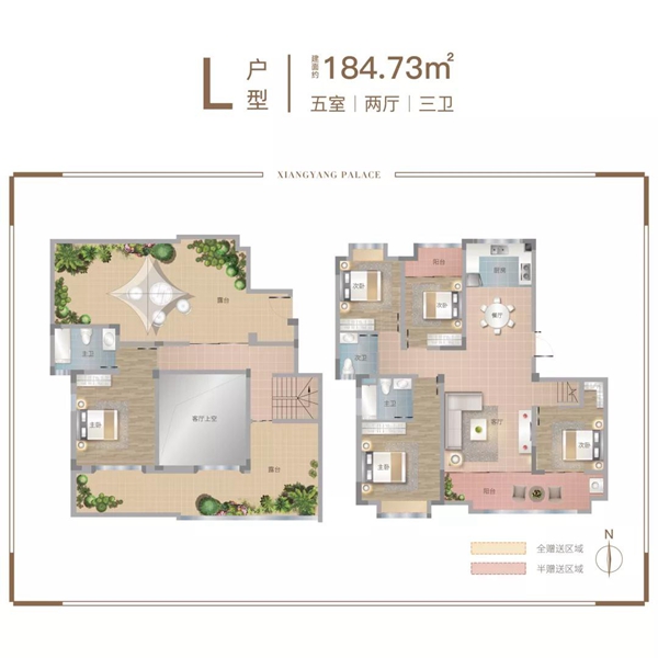 其中建面约184.73㎡五室两厅三卫墅境洋房