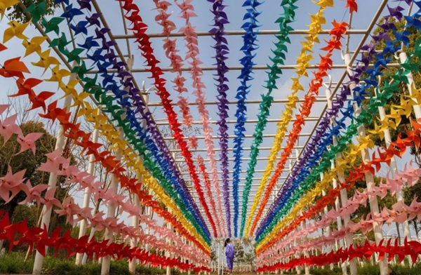 彩虹风车长廊呈现时光隧道