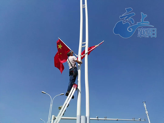 市城管委督查大队综合科科长李曙光介绍,在全市主次干道,包括高速出入口、檀溪路、卧龙大道等路段共悬挂国旗5900多面,这个是历年来主次干道悬挂最多的一次。