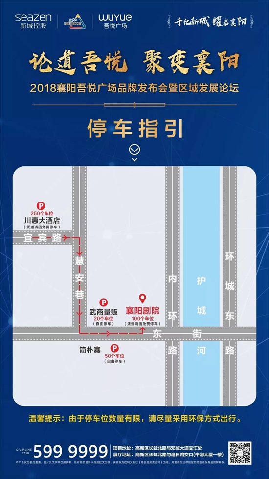 襄阳剧院,共100个停车位,凭借活动邀请函可免费停车