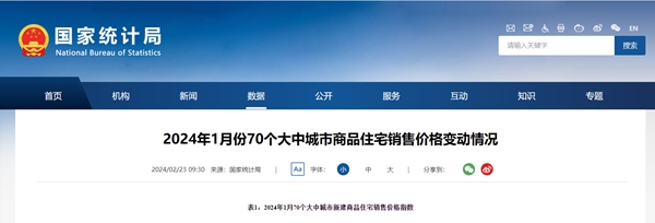 2024年1月份,70个大中城市中商品住宅销售价格环比下降城市个数减少,商品住宅销售价格环比降幅整体收窄、同比整体延续降势。