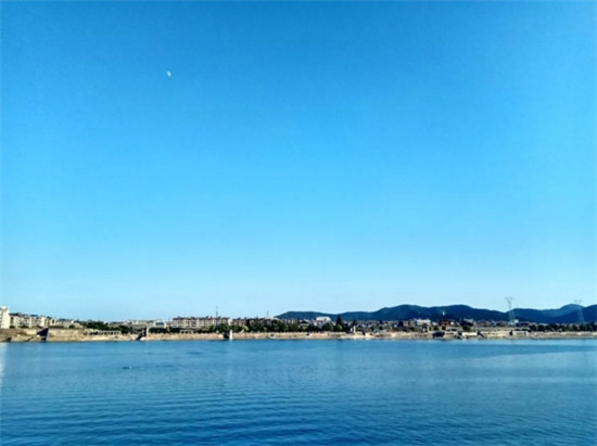 清澈见底、水天一色的汉江美景