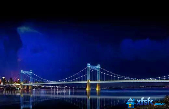 一座外形优美的悬索桥将飞架汉江两岸,