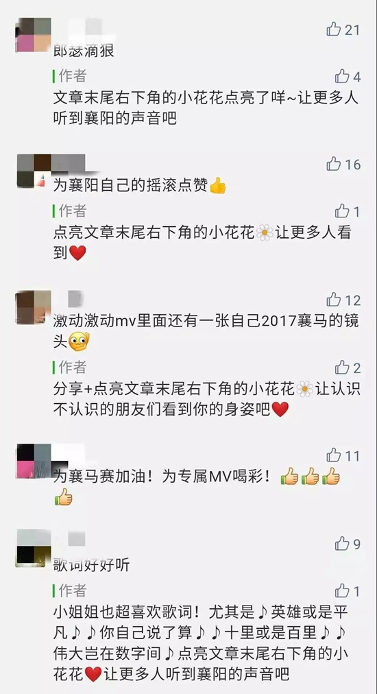 初秋微凉,但《襄马襄马》点燃了每个人心中的热情。听过的人都会跟着哼唱,总有一两句歌词让你印象深刻,产生共鸣。一时间,襄阳人的朋友圈变成了摇滚的海洋,处处回响着“无惧无畏,永无止境!”的高亢歌声。《襄马襄马》已成为现象级刷屏大作。