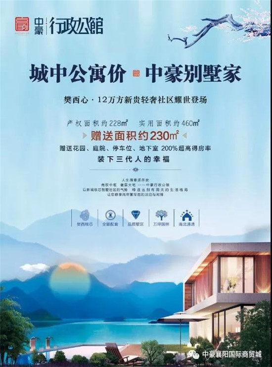 一个容纳20万人口、占地约32.5平方公里的樊西新区生态新城,以中豪襄阳国际商贸城为核心引擎,构筑前所未有的都市蓝图。2019年,中豪集团荣耀力作——中豪·行政公馆载誉面世,中豪·行政公馆集品牌旗舰店展示、电商创业、高端居住于一体,打造樊西核心12万方新贵轻奢社区,为市民带来全新居住体验,为樊西新区发展增添新活力。