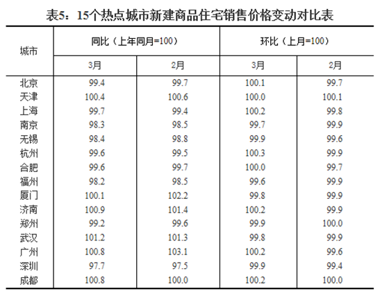 3月份,一线城市新建商品住宅销售价格环比上涨0.1%;二手住宅销售价格继续下降,降幅比上月收窄0.2个百分点。