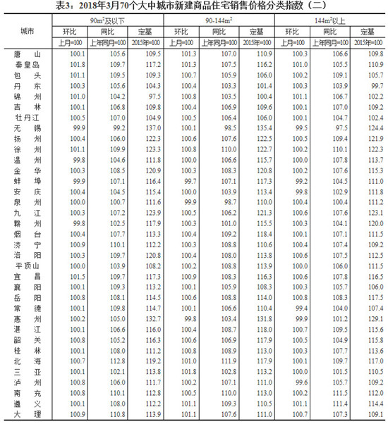 国家统计局今日发布了3月份70大中城市新建商品住宅销售价格。