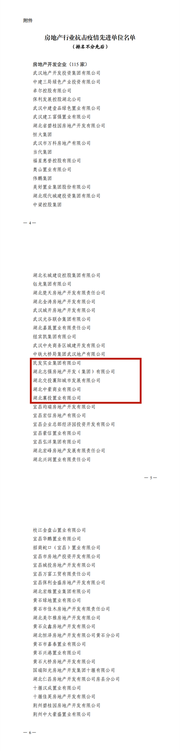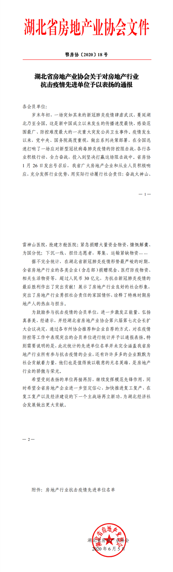 湖北省房地产业协会关于对房地产行业抗击疫情先进单位予以表扬的通报