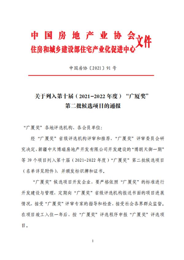 关于列入第十届(2021-2022年度)“广厦奖” 第二批候选项目的通报