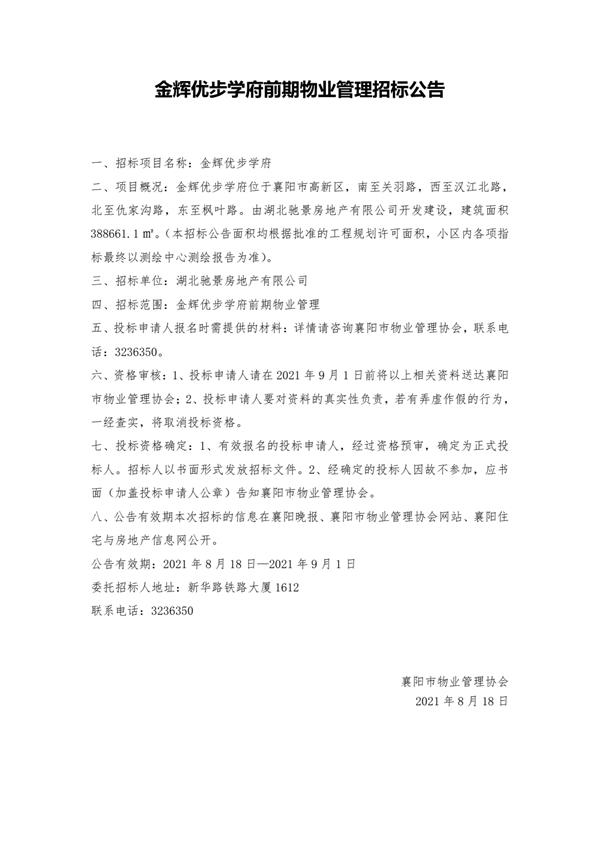 金辉优步学府前期物业管理招标公告