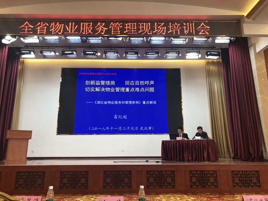 最后,由省房地产业协会法律顾问、《湖北省物业服务与管理条例》制订起草组成员、湖北楚风德浩律师事务所雷纪超律师对《省条例》相关重点内容现场进行深入解读,并以物业服务管理中的重难点问题、各地、各级房管部门履责重点、创新物业服务监管思路和措施、业主委员会监督指导等问题为导向为全体参会人员进行授课。