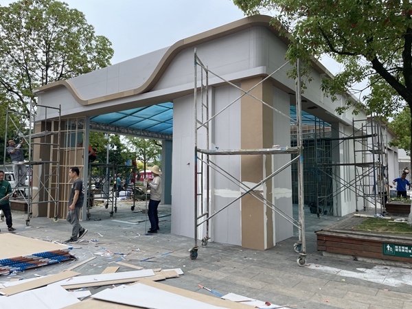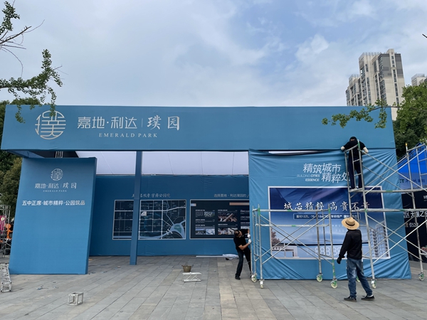 ▲金科地产工作人员正在努力搭建中