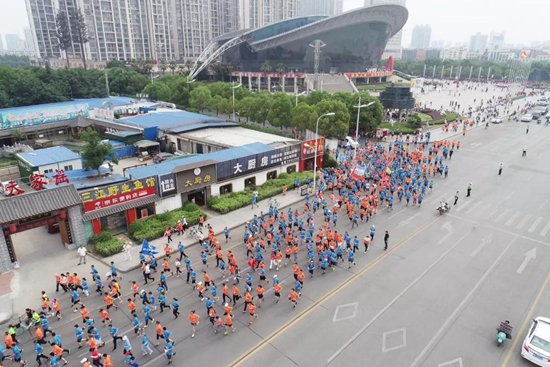 活动起点处——襄阳体育馆门前人声鼎沸,来自各行各业的跑步爱好者们齐聚一堂,共计3200余人参与到此次活动中来,跑友们在这里拍照留念。用青春、健康、活力的方式拥抱5月,尽情享受这场全城瞩目的运动狂欢。