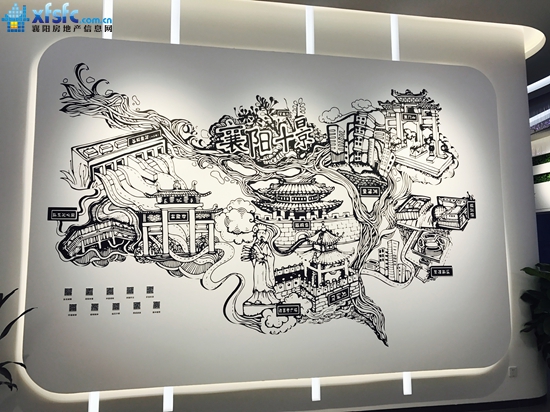 一进门就感受到一股浓浓的襄阳味,正对着大门是一副巨大的砂岩浮雕,走近一看原来是一幅襄阳“一心四城”的城市格局图,刻有昭明台、古隆中、多宝佛塔、陈老巷等襄阳元素。