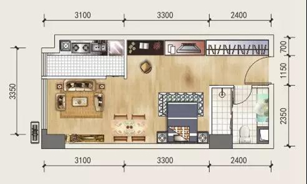 C3户型(52—54㎡ 一室一厅)