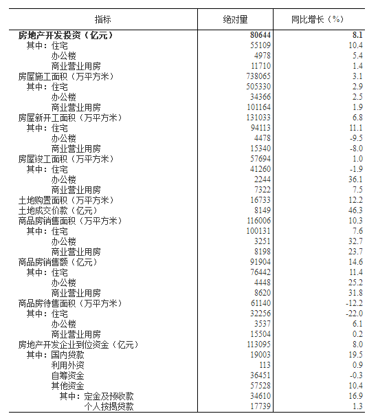 房地产开发企业本年完成投资:指报告期内完成的全部用于房屋建设工程、土地开发工程的投资额以及公益性建筑和土地购置费等的投资。该指标是按照形象进度原则统计累计数据。