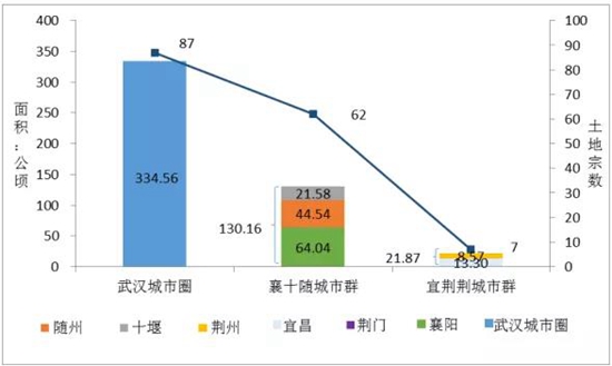 (一)土地供应情况:武汉城市圈规模最大,宜荆荆城市群供应规模远少于襄十随