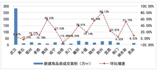 2、全省17个市州商品住房新增供应面积6涨9跌,宜昌涨幅最大