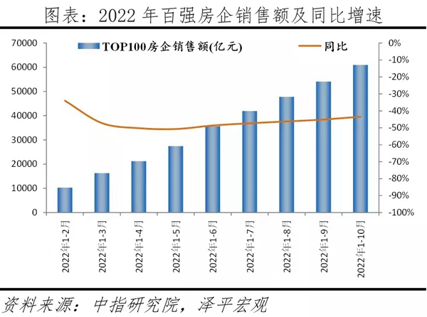 2022年1-10月,百强房企销售总额同比下降43.4%,房地产开发投资同比下降8.8%,10月,超9成50强房企不拿地。前三季度境内债展期、美元债违约规模分别为1193亿元、550亿美元,较2021年全年分别增加1000亿元、368亿美元。