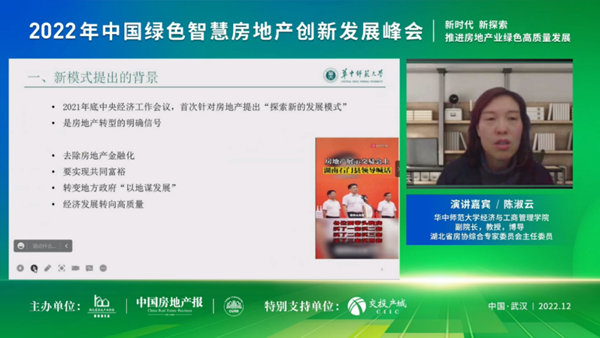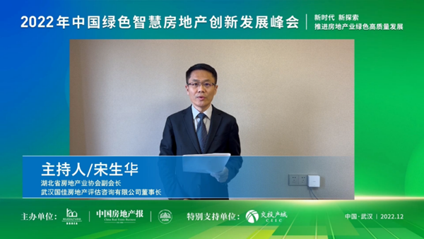 2022年12月20日,由湖北省房地产业协会、中国房地产报、中国城市与区域治理研究院主办,湖北交投产城控股集团有限公司协办的“2022年中国绿色智慧房地产创新发展峰会”以线上形式召开。湖北省住房和城乡建设厅房地产市场监管处处长康忠荣,宜昌市委常委、宜昌市人民政府副市长刘丰雷,中国房地产业协会副会长兼秘书长陈宜明,湖北省房地产业协会会长潘世炳等领导、专家、企业代表共聚一堂,探讨变局下房地产行业发展面临的困惑,前瞻绿色低碳与中国经济发展结合的趋势。各市州房协(开协)、估价、经纪(中介)协会,行业主管部门、房地产行业企业代表及行业同仁共计6万余人参加会议。会议由省房协副会长宋生华主持。