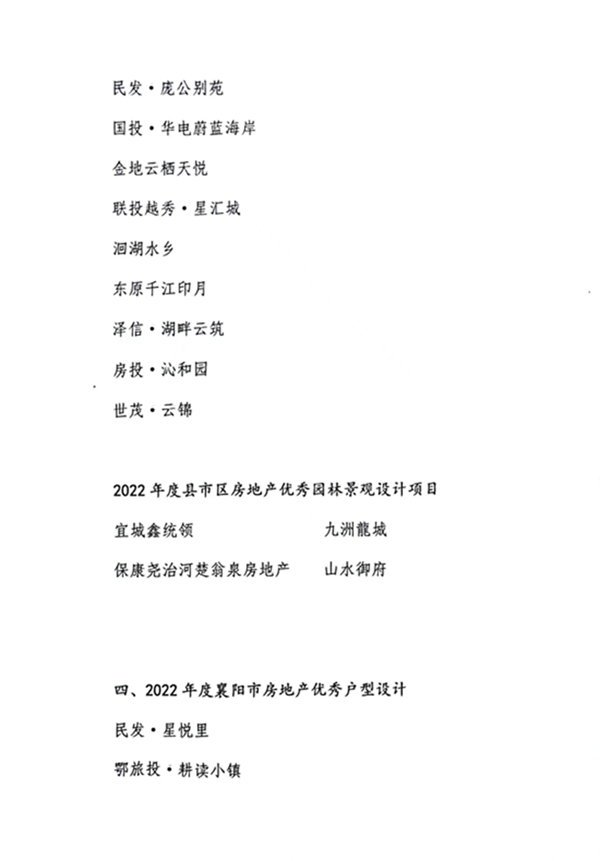 2022年度襄阳市房地产业“双放心”评选活动获奖名单通知