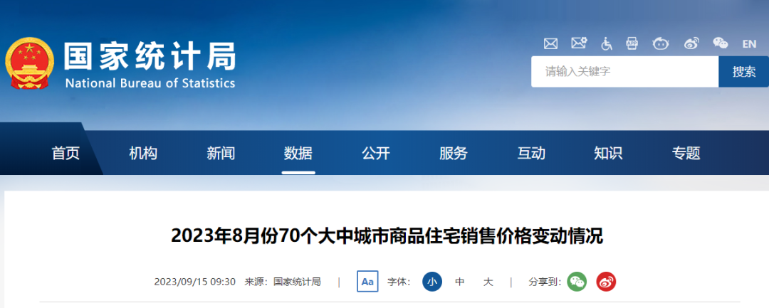 9月15日,国家统计局发布了2023年8月份70个大中城市商品住宅销售价格变动情况。数据显示,2023年8月份,70个大中城市商品住宅销售价格上涨城市个数减少,各线城市商品住宅销售价格环比下降、同比有涨有降。