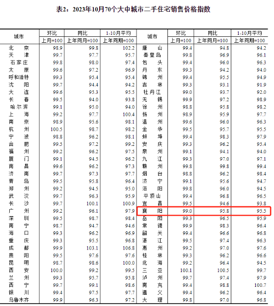 10月襄阳二手住宅方面: