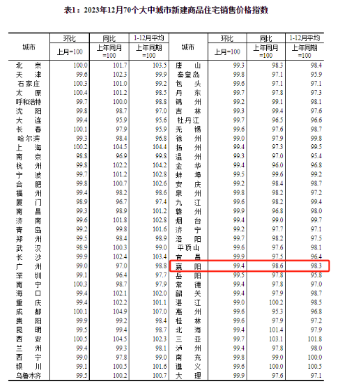 其中,襄阳新建商品住宅销售价格 ,环比下降0.3%,同比下降1.4%。