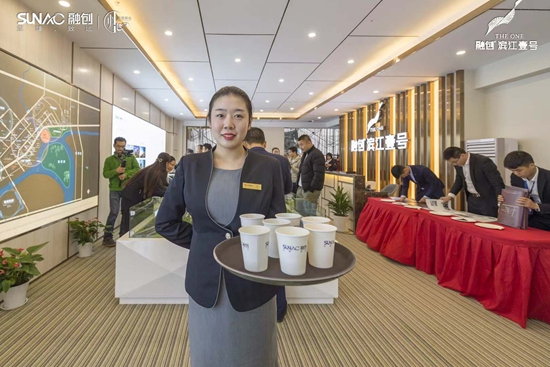 城市展厅位于航空路民发广场旁(悦华里3号门),展厅设计亮眼吸睛,随即踏入便能看到融创的品牌历史在眼前徐徐展开。项目沙盘位于展厅正中,天赋资源,绿意相生,建筑与自然于方寸之间尽揽,让来宾对项目整体了然于胸。