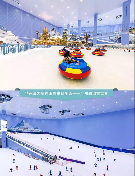 集娱雪与滑雪功能于一体的广州融创雪世界,是融创文旅游乐项目里的旗舰业态。广州融创雪世界占地面积7.5万平方米,场内造雪面积超4万平方米,平均厚度50厘米,也是目前全球先进的第四代室内滑雪场,拥有世界超大的室内娱雪区及系列冰雪游乐项目,零基础、初、中、高级4条不同坡度的雪道,垂直落差66米,最长雪道460米,是世界超大室内滑雪场之一,日均可容纳3000名游客。