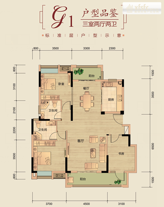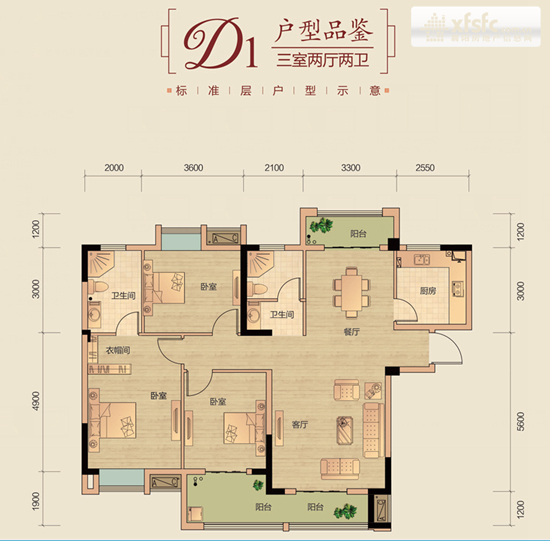 本次高层主推D户型,D1、D3户型分布两侧,D2户型拱居中央,共计6栋。这6栋楼排列星光大道之侧,形成整齐美观的D户型系列高楼景观。