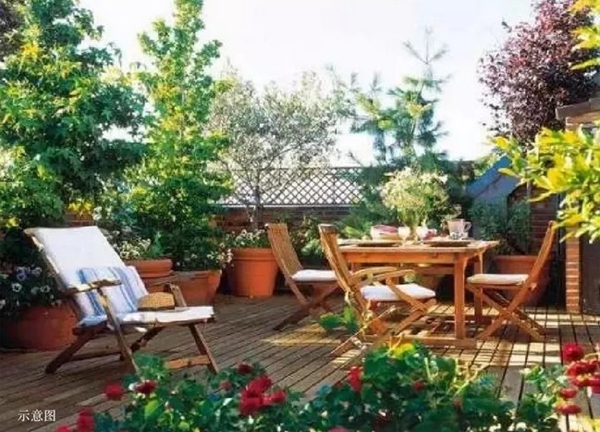 在露台上种满缤纷多彩的花卉和生机勃勃的绿植,晨光熹微,在露台花园中拾花弄草,修修剪剪,呼吸着香气放松身心,享受大美的境界。