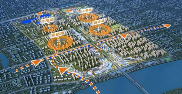 文旅商业核心区总规划约154万平方米,规划布局中采用流水线化的方式,串联西侧汉江滨江公园及场地内部各种活动空间,将文化、旅游、教育、生活、康养等要素深度融合,提升城市功能,塑造面向未来的城市客厅。