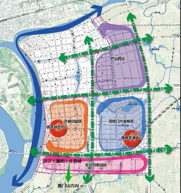 汉江(襄阳)生态城,在三千里汉江的江岸上,北有古镇休闲区,南有鹿门山生态旅游示范区,穿梭在历史文化长河中,依托濒临汉江及三条城市快速路的优势,汉江(襄阳)生态城将构建更为开放的延岸空间,更富活力的城市功能,更具内涵的水岸文化,更加绿色的生态环境。