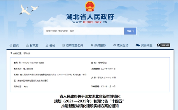 2021年11月18日,在湖北省人民政府发布的《湖北省新型城镇化规划(2021—2035年)》中强调,湖北要提升省域副中心城市能级,到2035年,襄阳将提升为Ⅰ型大城市,必须加快建设襄阳都市圈,推进襄阳东津新区等重点板块建设,以襄阳东津国家级产城融合示范区为引领,推进城市空间拓展和品质提升。