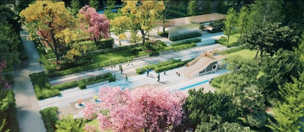 “坚持更大的绿地覆盖率原则,保证社区绿地率不低于35%,营造更高含氧的社区空间,缓解都市快节奏生活的疲劳,关照孩子自然阳光的健康成长。”