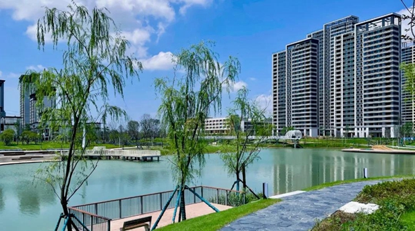 在社区规划建设上尽可能的维持水系原有的自然风貌,与周边社区看做一个整体,将自然生态廊道融入社区、融入街道,形成一张绿色生态大网。