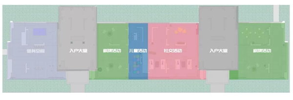“我们认为建筑不是冰冷的建筑盒子,我们在所有楼栋均布置有主题性架空层空间,实现业主阅读休闲、儿童娱乐、活力健身等全龄性爱好需求。”