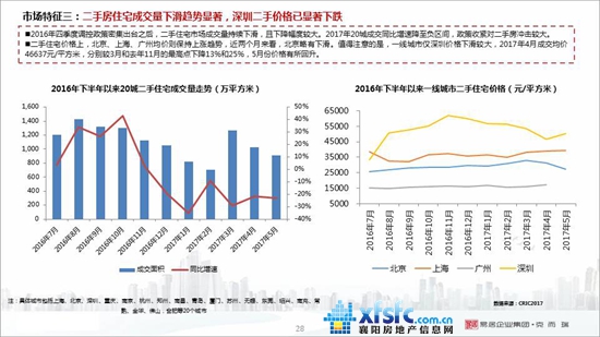 第三个特征二手房成交价格已显著下跌,二手房成交套数下滑52%,这也是一个巨大的数字,北京深圳其实都差不多,下滑的情况都是差不多的。