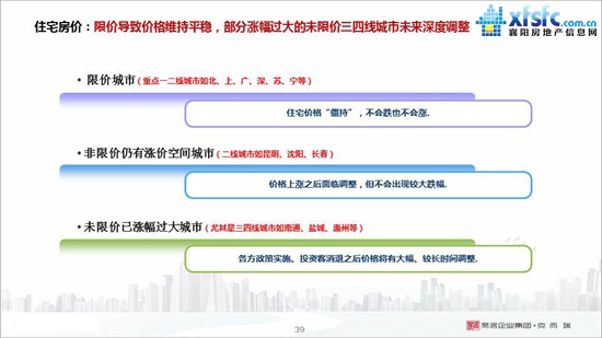 住宅房价:限价导致价格维持平稳,部分涨幅过大的未限价三四线城市未来深度调整。