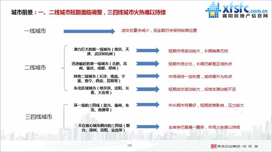 城市前景:一、二线城市短期面临调整,三四线城市火热难以持续。