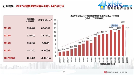 行业规模:2017年销售面积回落至13亿-14亿平方米。