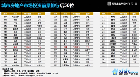 我们对286个城市整个的投资前景地,如果做一个总结的话有三个特征: